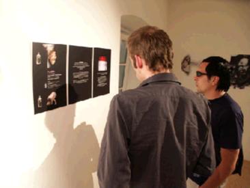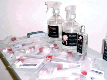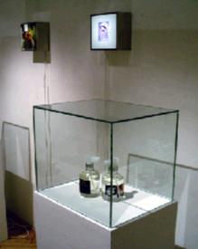 Plasma by Stigmata, Cryo.Plasma digital prints, sound, internet, magazines, slide show, light boxes, video clips, Cryo.S vials for cryonization, space, 2004 Production: Automata 2004, 2005 Description: The focus of this project is on a home-made liquid substance packed in cryo.s vials made for preservation in liquid nitrogen (cryonisation).
